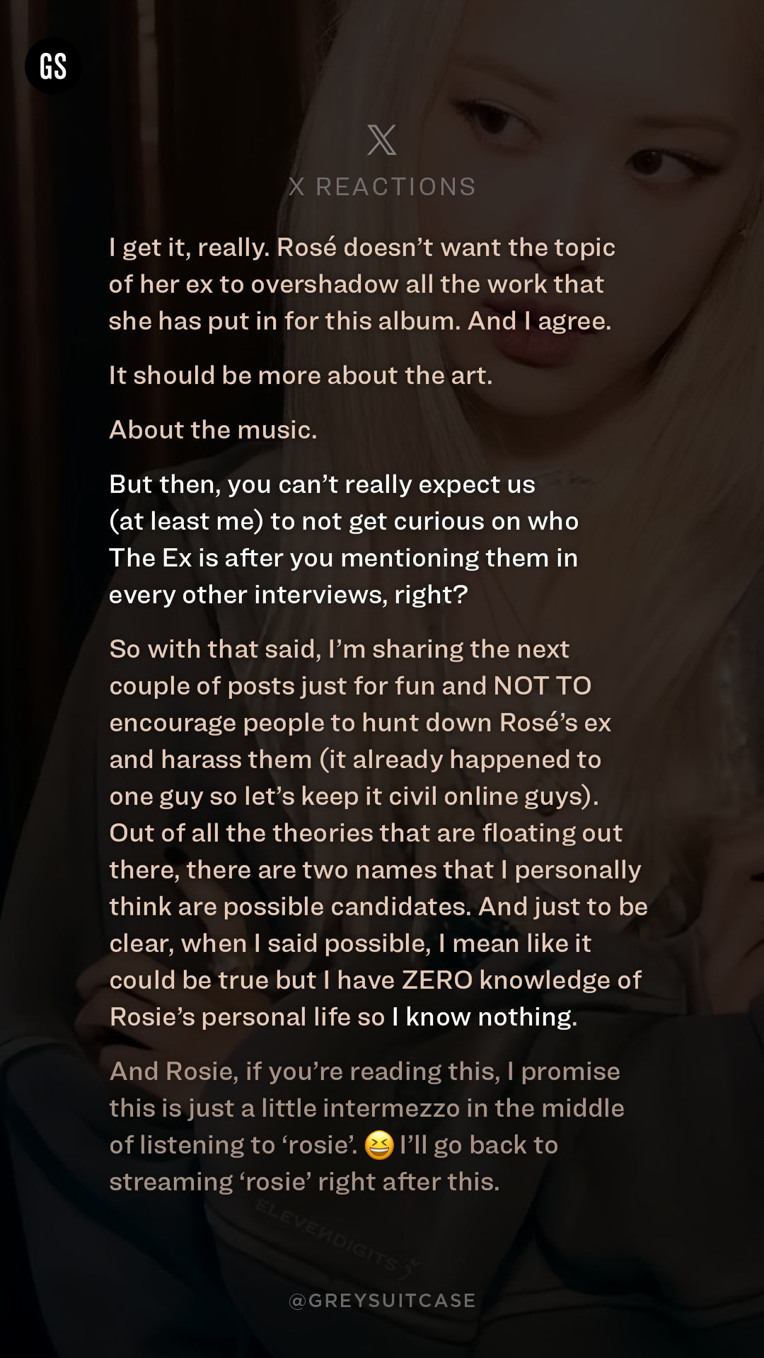 I get it, really. Rosé doesn’t want the topic of her ex to overshadow all the work that she has put in for this album.